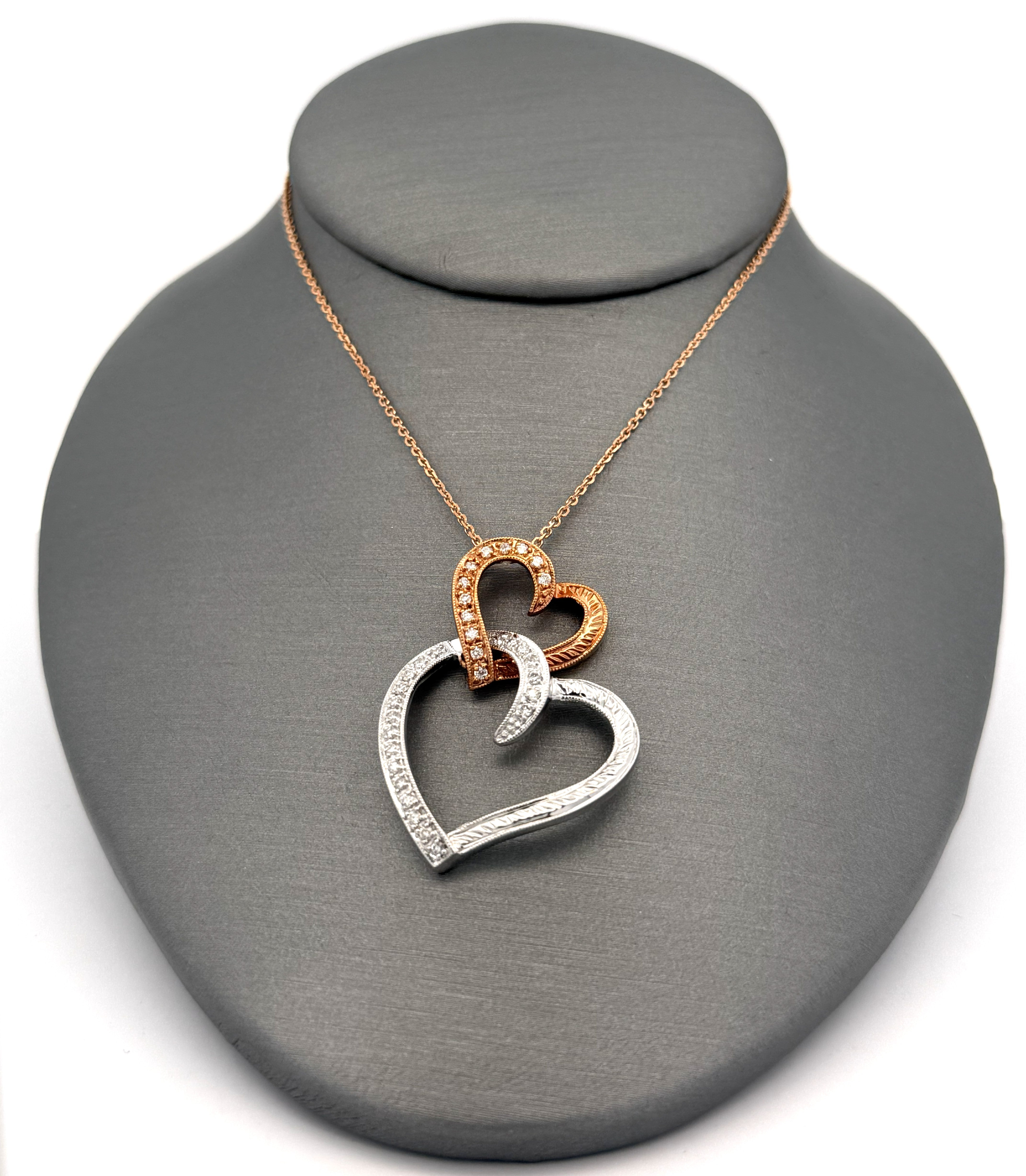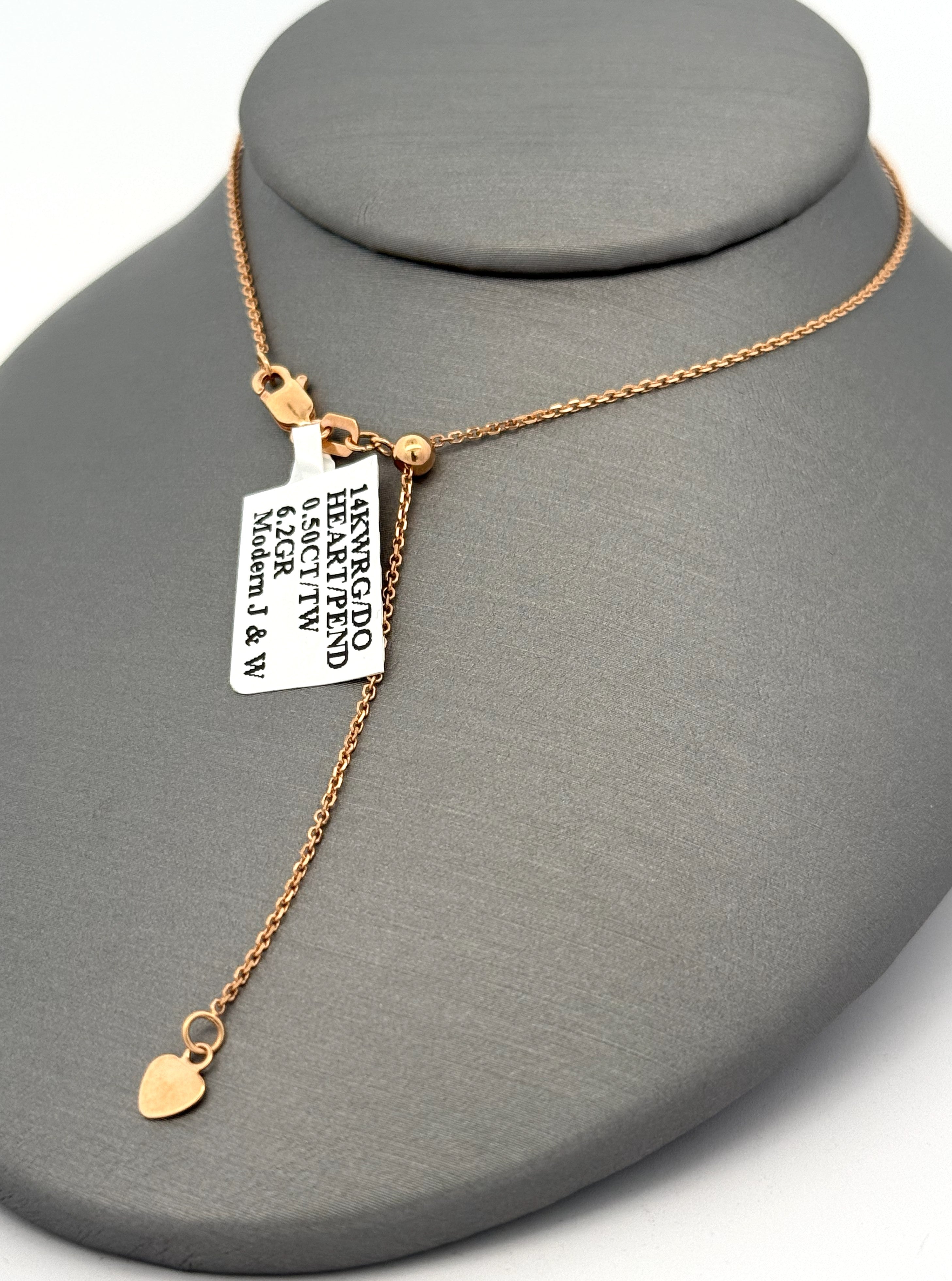 14k WRG 0.25 CT Diamond Ladies Heart Pendant Necklace, 6.2g, S108788