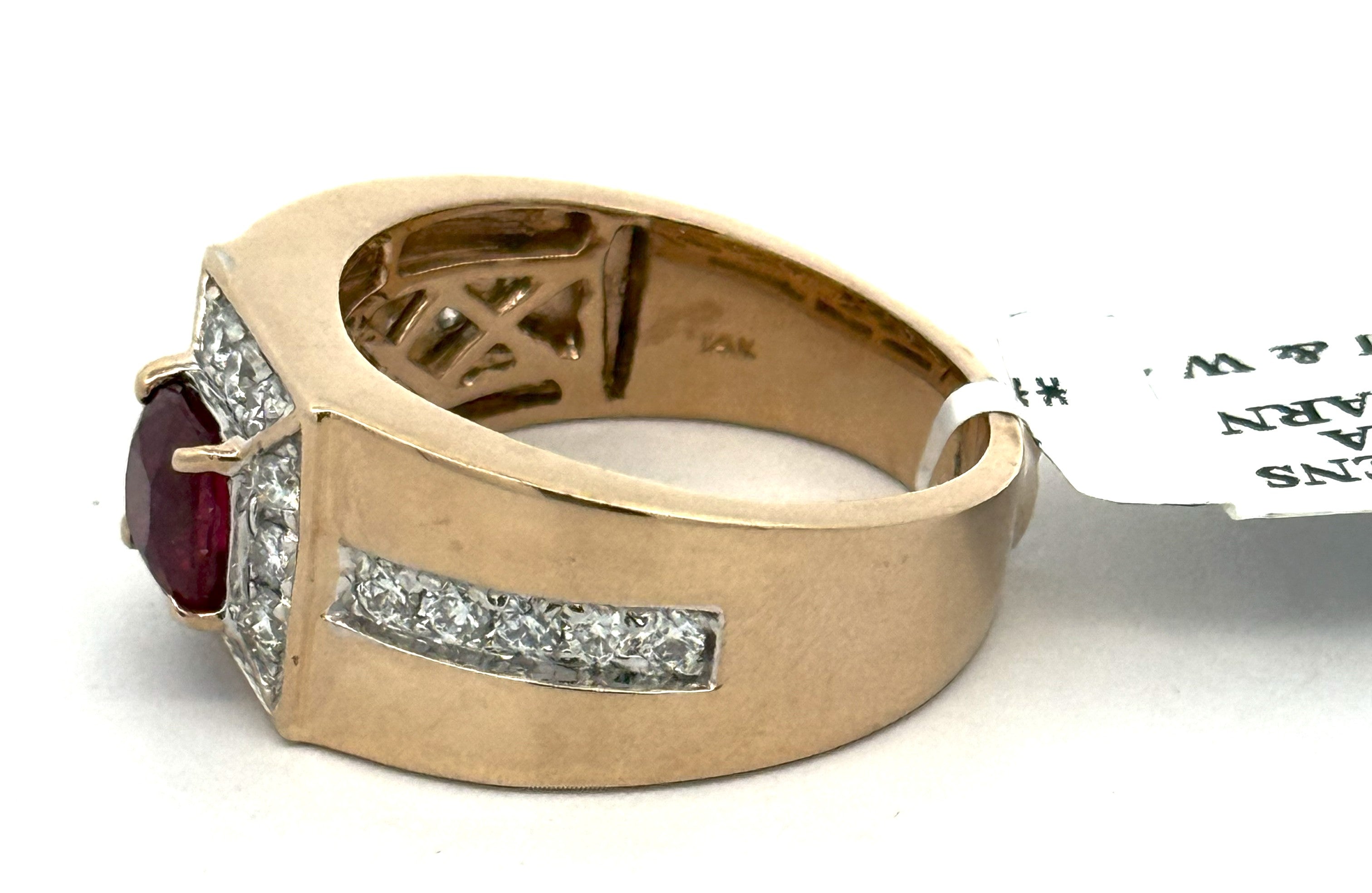 14k Yellow Gold 1.50 CT Garnet & 0.75 Diamond Men's Ring, 10.7gm, Size 10.25, S108583